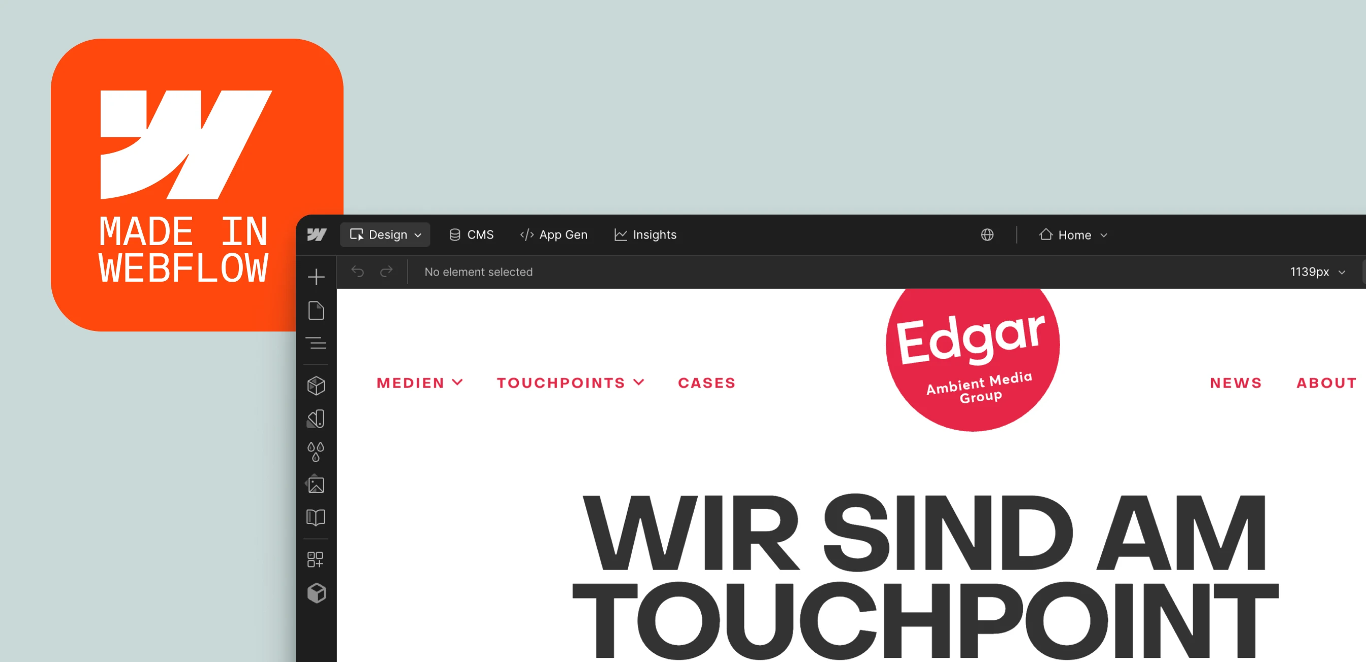 Mit über 60.000 Werbeträgern und einem Portfolio, das von Gastronomie über Hochschulen bis zu Kinos reicht, braucht Edgar eine Website, die mit dem Tagesgeschäft Schritt hält. Die Umsetzung in Webflow macht genau das möglich: Das Edgar-Team kann Inhalte eigenständig pflegen, neue Medien ergänzen oder Kampagnen aktualisieren – schnell und ohne Umwege. Die komplexe Angebotsstruktur mit verschiedenen Medientypen, Zielgruppen und Touchpoints bleibt dabei übersichtlich und lässt sich flexibel erweitern. Und das bolde Design klaren Flächen und der großzügiger Typografie? Ließ sich genau so umsetzen, wie es entworfen wurde – ohne Kompromisse.