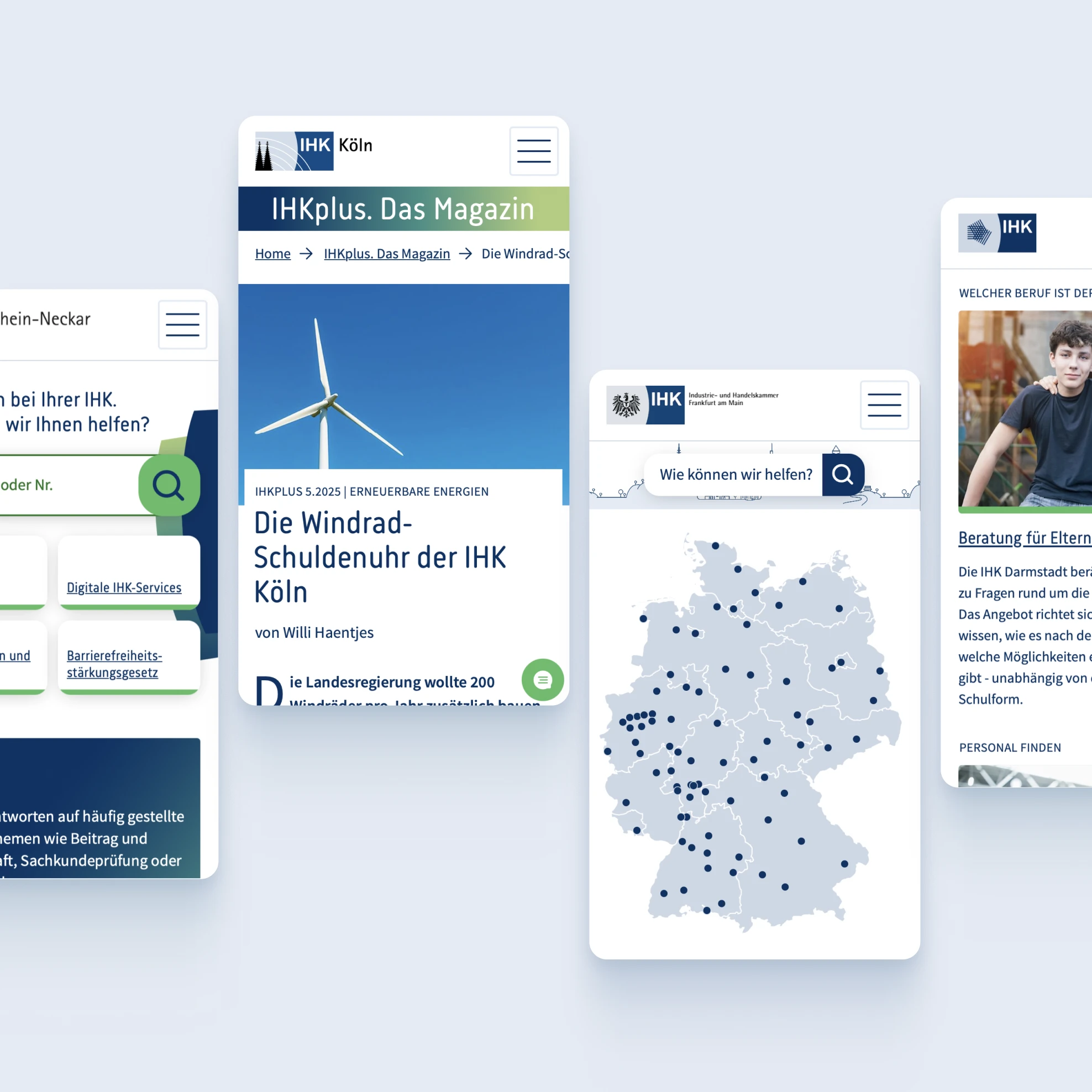 Mit dem Redesign der IHK24-Webauftritte standen wir vor der Aufgabe, über 60 Industrie- und Handelskammern digital neu zu denken und ihnen eine gemeinsame, moderne Grundlage zu geben. Das bestehende System war über Jahre gewachsen, uneinheitlich und für Nutzer kaum noch überschaubar. Unser Ziel war es, aus vielen Einzelauftritten ein starkes, klar strukturiertes Informationsportal zu formen, das Orientierung schafft und die unterschiedlichen Bedürfnisse der Kammern verbindet.